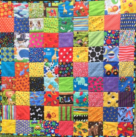 I have been busy making an entry for the AQC challenge and working on a special, rather gorgeous 40th birthday quilt – neither of which I can share with you. However, after receiving a couple of enquiries for kids quilts, I realised my stock was getting quite low. So I am working on building it up again – watch this space…. This is the first new one that I have made.
