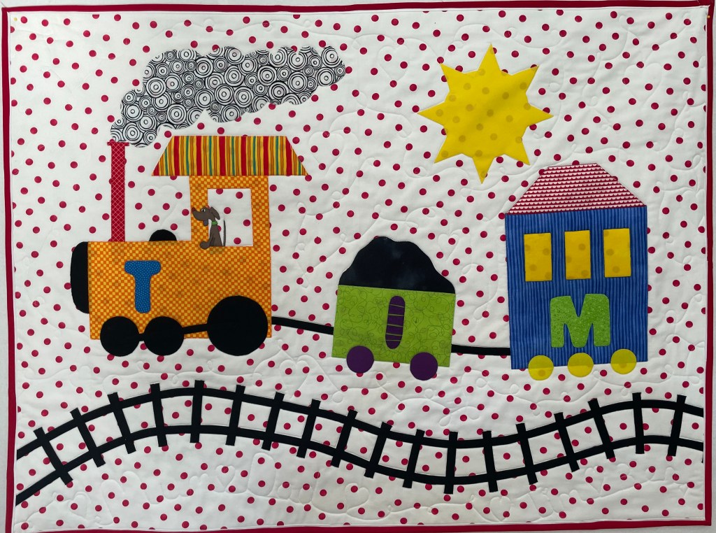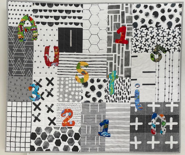 A playmat for baby Austin born on 15th March. Soft flannel on the back for him to lie on now with a front to explore during tummy time a bit later on. He can learn his letters and numbers and spot fish, animals and cars during his roaming.