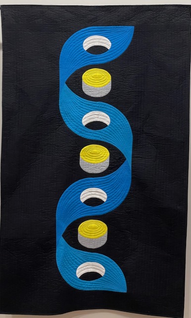 I seem to be suffering from a bit of RSI in my elbow from rotary cutting! So I thought I’d give the Amanda Murphy circular rulers a go and make my first whole cloth quilt. I started with a piece of white sandwiched fabric and a circle of tiny circles. Then a was faced with the rest of the empty quilt to fill up. I am not a good planner, so I just worked my way around the piece and filled it up. A couple of appliqué blobs and a trimmed binding and it was done. Took ages but I enjoyed doing something different although frustrated at times! The quilt is now sold!